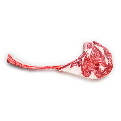 This is a hand carved, custom cut, Tomahawk Steak weighing 48 OUNCES! This tender cut is hand carved directly from a calf raised locally in Texas. It is trimmed and cleaned to expose the bone for a unique presentation perfect for special gatherings, events, holidays, and celebrations. Make your special moment count with this unforgettable feature entree